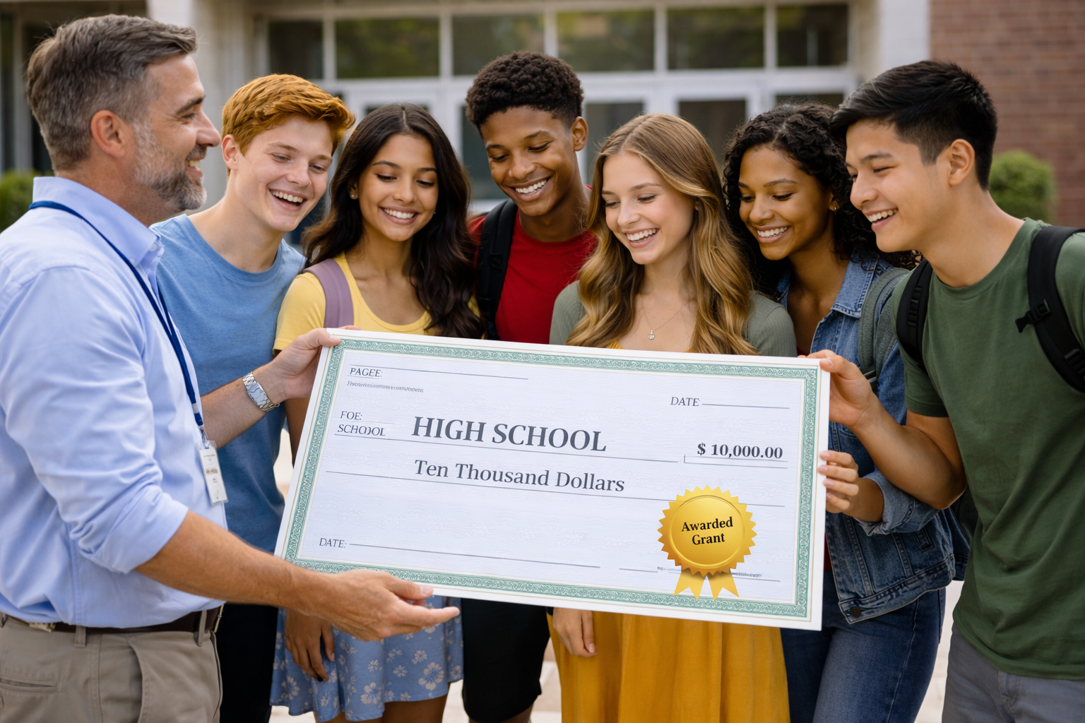 Den Gesamterlös von 340 Euro übergab der Schülersprecher Adrian XXX zusammen mit GMS-Rektor Herr XY, Frau XY (langjährige Koordinatorin der Tafelladenaktion) und den SMV-Lehrerinnen Frau XY und Frau XY Donnerstagmorgen, den 30.6.2022 Herrn XY als Vertreter des Tafelladens.